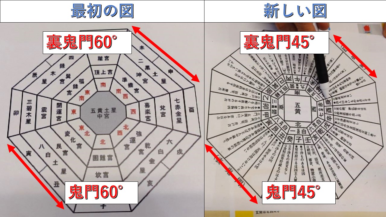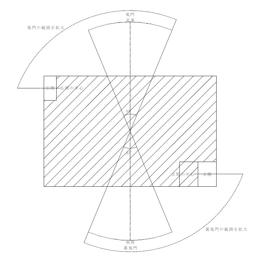 これは鬼門・裏鬼門の角度がさっきより小さい「それぞれ45度」ですね。