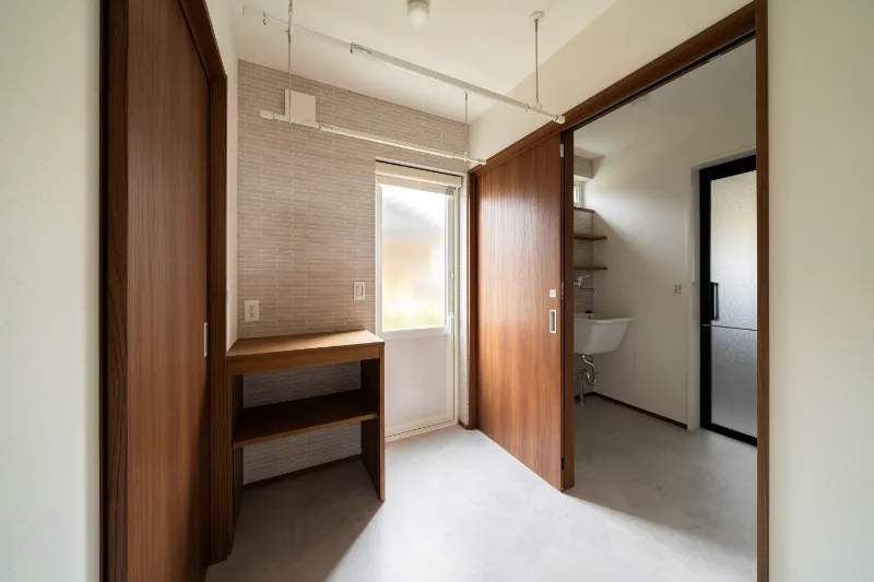 水廻り近くで多いのが、洗面脱衣室内に干すスペースを確保する間取りです。