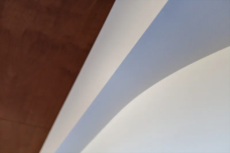 そのこだわりは見上げた先の天井との取り合いにまで。異素材が美しく重なったノイズレスな空間です。
