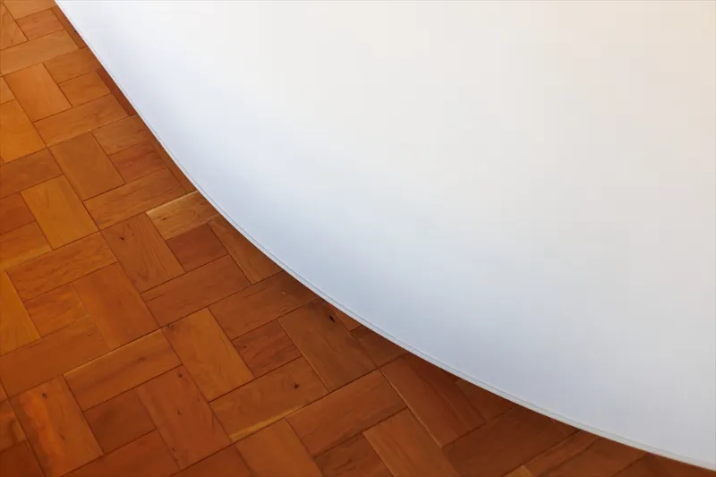 フローリングと曲線壁が織りなすコントラストに、職人の技とデザインのこだわりが宿る一角です。