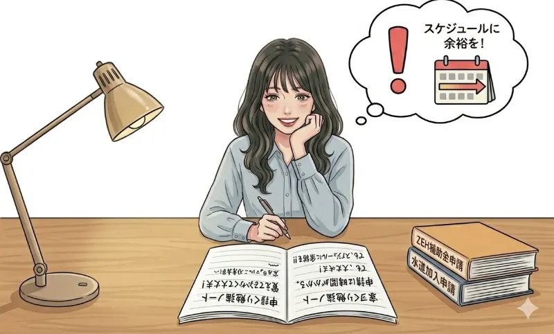 こればかりはハウスメーカーもお施主様もコントロールできないので、これから家づくりを考えている方は、とにかく「スケジュールに余裕を!」と心に留めておいてくださいね。補助金を検討中の方は特に、、、!