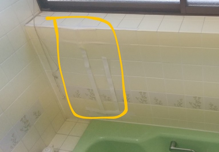 今回は、ジョイハウスOB様のご依頼で、壁のタイル(黄色いマーク)部分が浮いてきて危ないので、何とかして欲しいとのことでした