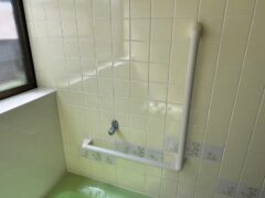 次は、高齢者の浴槽で多い転倒、溺水対策として手摺を施工しました。