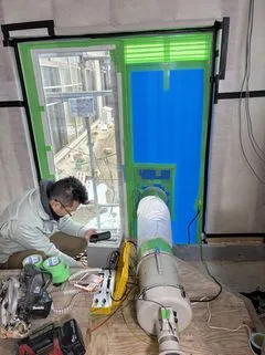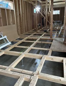 床下エアコンで冷暖房するので、床下の基礎を水洗いし、清掃しています。