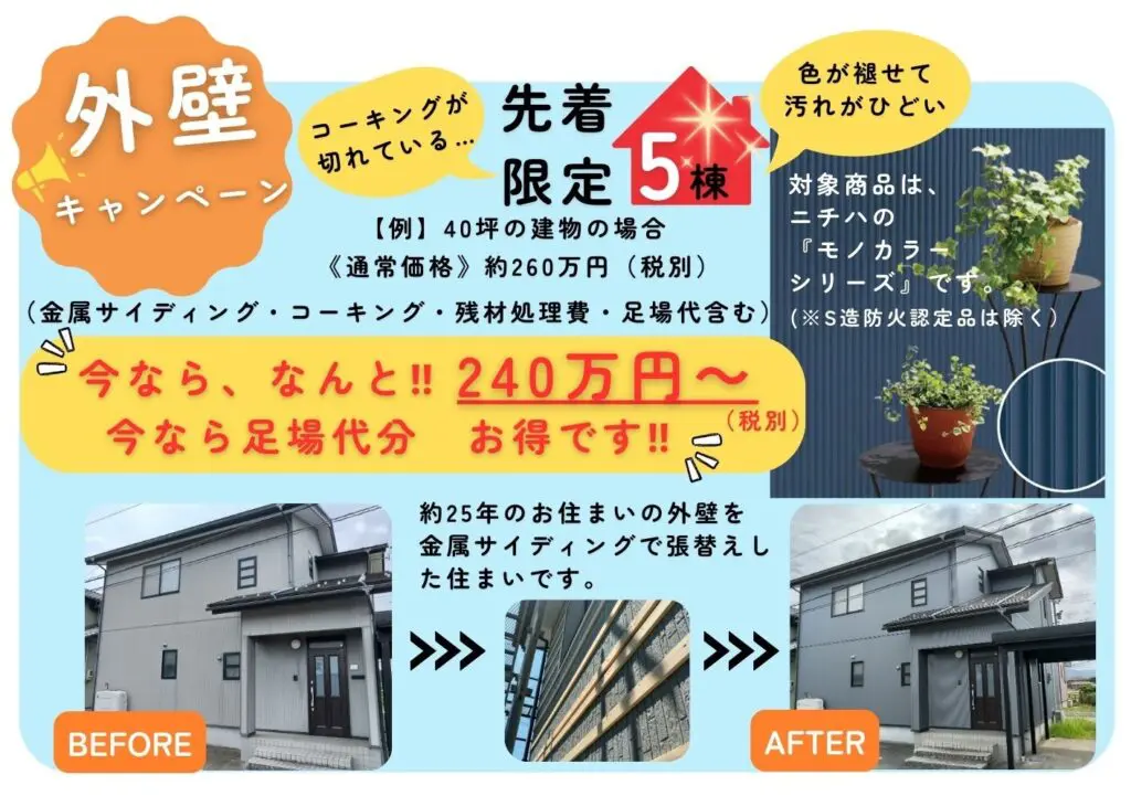 外壁リフォームをお考えの方におススメ‼ 断熱性が高く、強度も高い金属サイディング