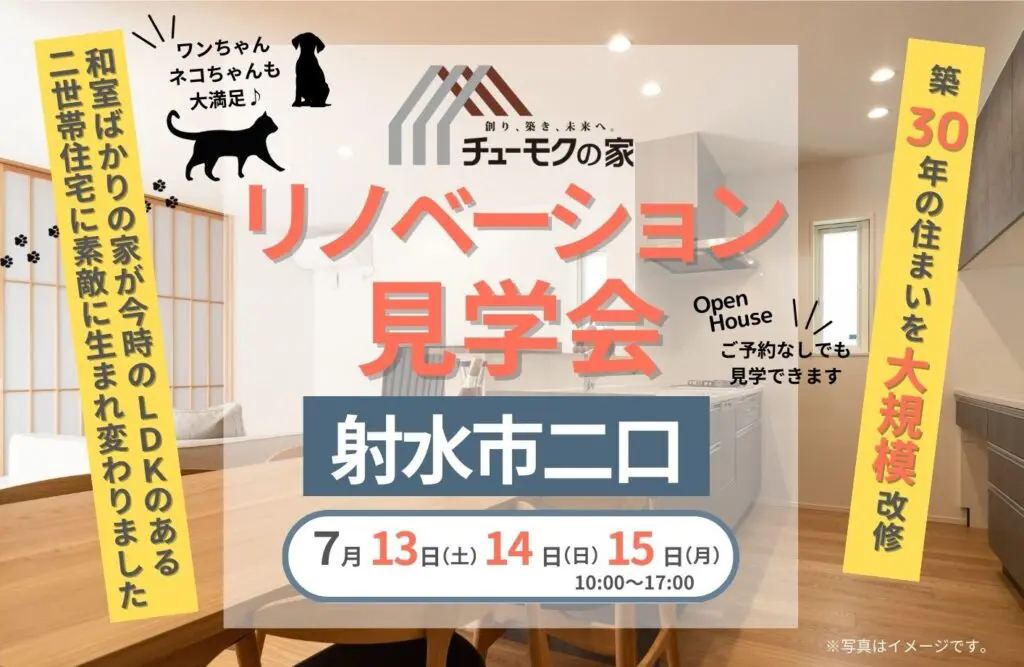 今回は「リノベーション見学会」です‼ 築30年のお住まいを二世帯家族が暮らすために大規模改修しました。