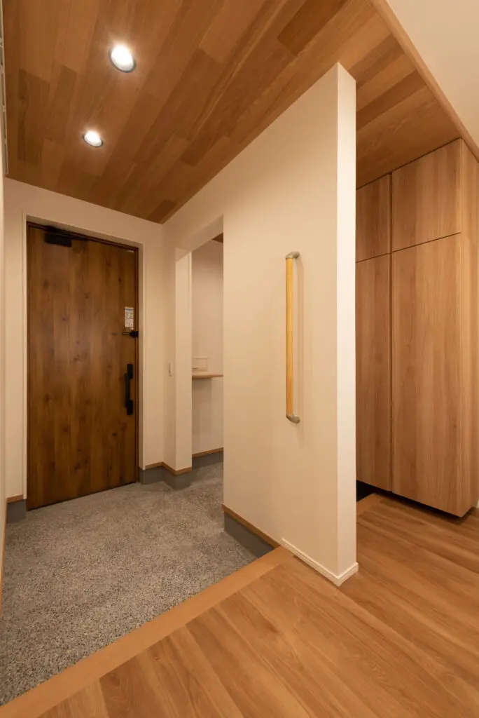 4.5帖程のスペースに お客様用の玄関と家族用の玄関を作ることで、お客様用の玄関はスッキリ片付くので、来客の多い方にお薦めです。