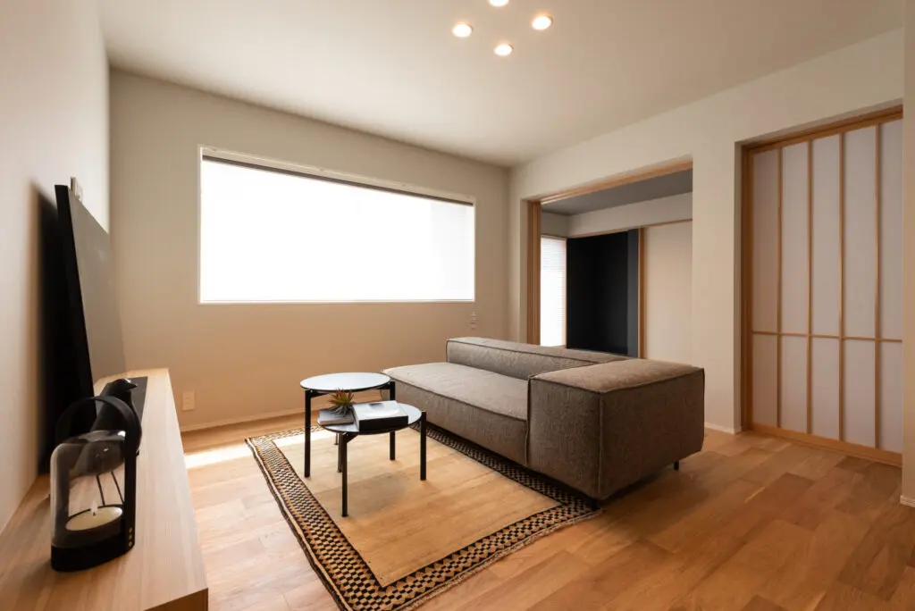 真っ白のクロスよりも、床材や建具などとのコントラストが弱まるため、全体を落ち着いた空間にしてくれるグレークロス。グレイッシュなインテリアやコンクリート調のアクセントと合わせるのにぴったりなのは勿論、ライトな木目調と合わせたナチュラルモダンスタイルにもよく取り入れられています。