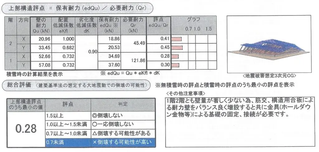 そして 多くの建物が、下図のように『倒壊する可能性が高い』と診断されています。