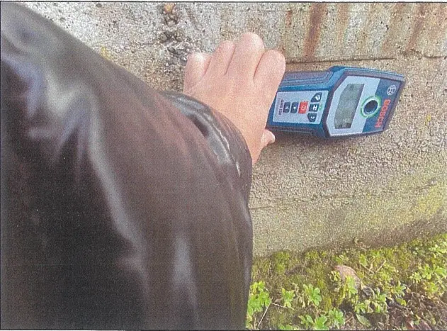 基礎内に鉄筋が入っているかどうか探知機で確認しています。