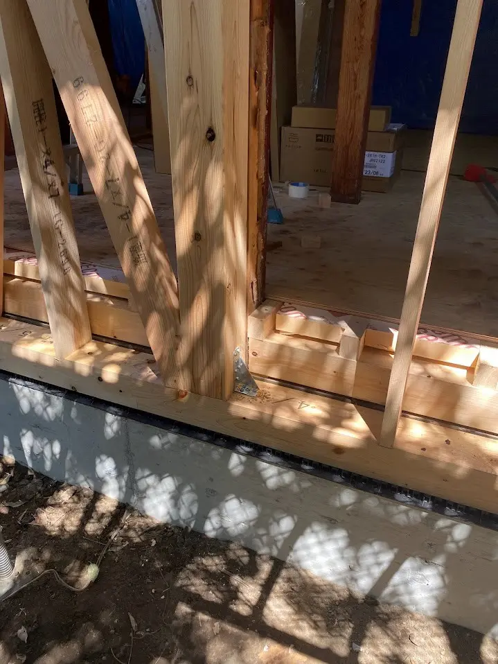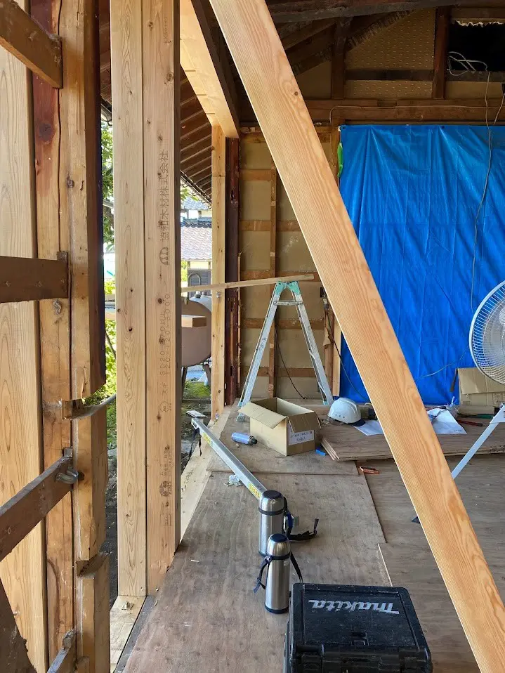 既存の柱の外に新たに柱を建てて筋交を入れました。