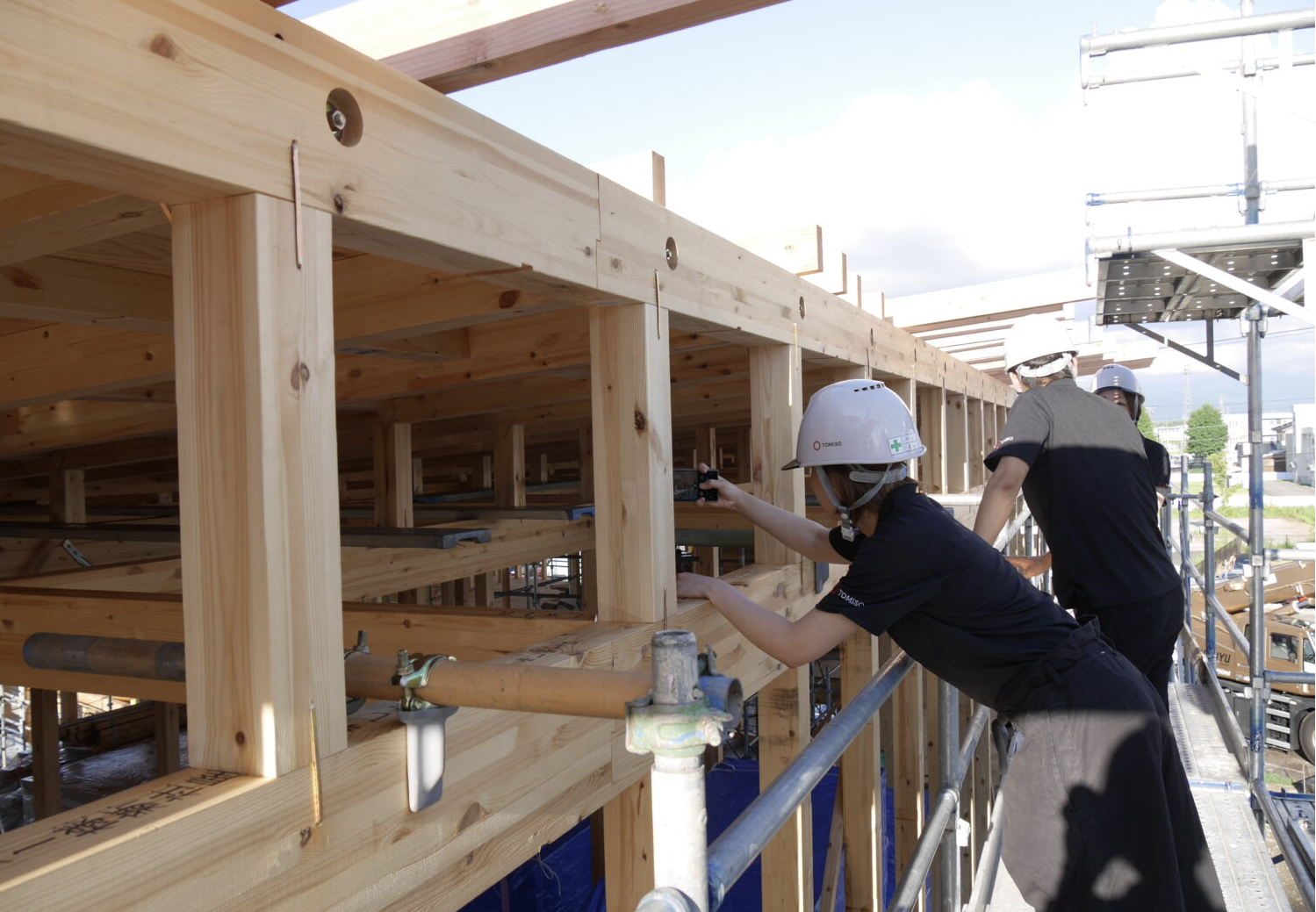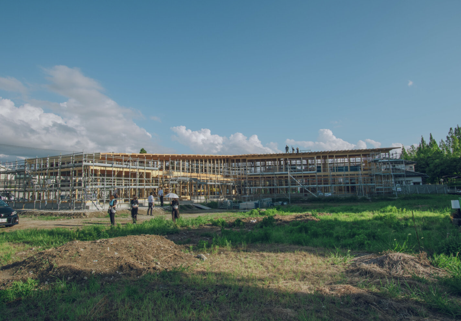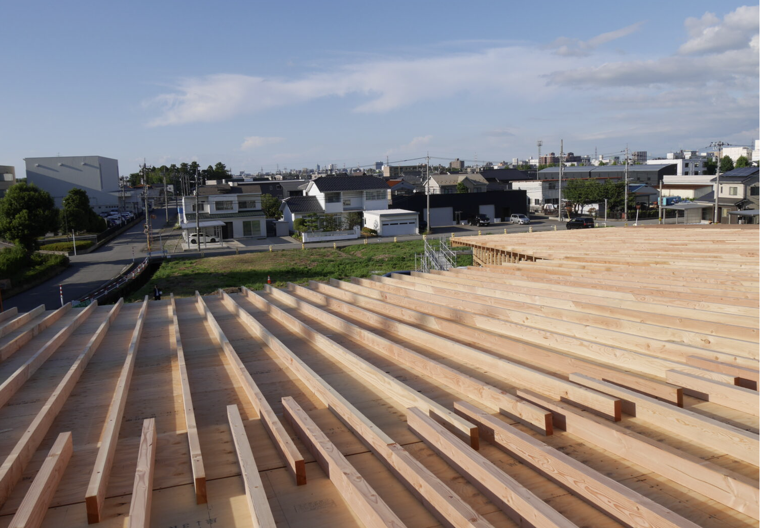 また、建て方の現場に足を運ぶと大工さんが大きな木槌を力いっぱいにたたく姿を何度も見ていました。その力や技、その瞬間の集中までもが建物そのものに伝わっていくように感じました。建物に命を吹き込むのは、やっぱり人でしかできないんだと思います。暑い中、工事に携わっていただきました皆様、本当にありがとうございました。