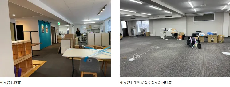 旧社屋の引っ越しが終わり、いよいよ新事務所での片付け作業!社員全員でせっせと動いていたのもあり、段ボールの山がみるみるうちになくなっていきました。