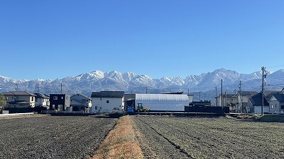 これは下から撮った写真ですが、2階の寝室側から立山連峰が一望できてすごい眺めだったそうです。土曜日は本当に雪化粧された立山が青空にくっきり映えていましたね!なんとも贅沢な景色。
