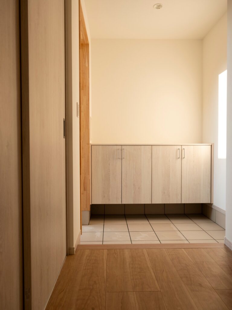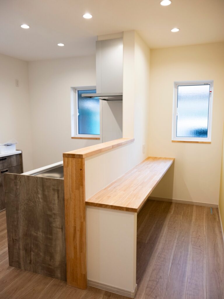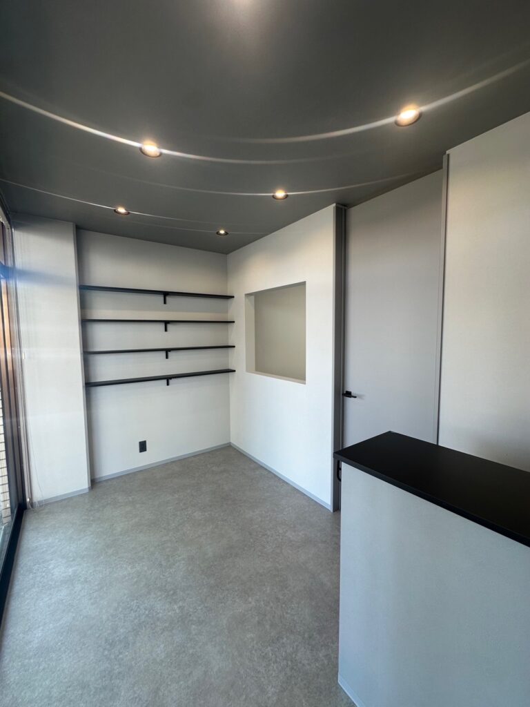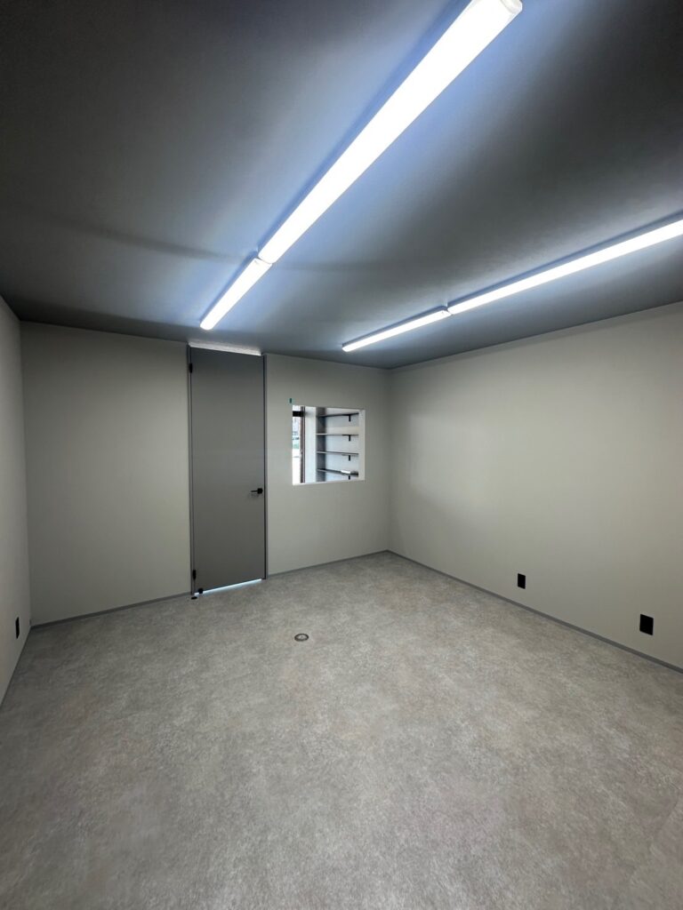以前の面影は消え、ペットが歩きやすく、お手入れもしやすい床材へと一新。壁も掃除のしやすい素材を選び、床には排水設備も設けました。 ただ「おしゃれ」なだけでなく、限られたスペースの中で「お客様もペットも心地よく過ごせる」ための工夫を凝らした、ドッグサロンのベースとなる空間です。