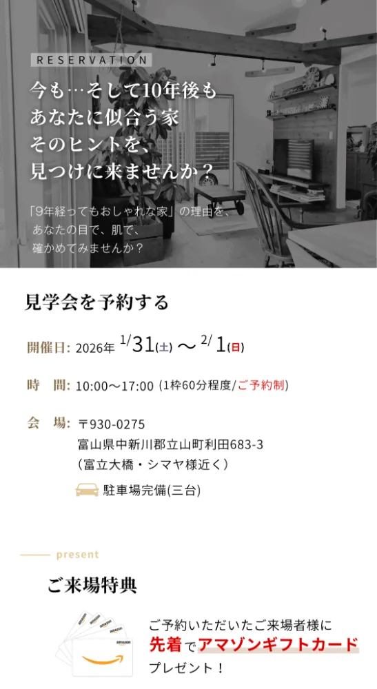 1/31-2/1 9年目のモデルハウス見学会 今も10年後・20年後も「愛着がもてる家」が欲しいあなた様へ