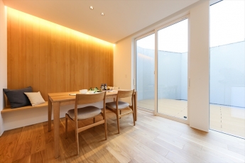 カーテンをあけてもストレスがないよう、外部からの視線を遮る設計でプライバシーと開放感を両立させている。