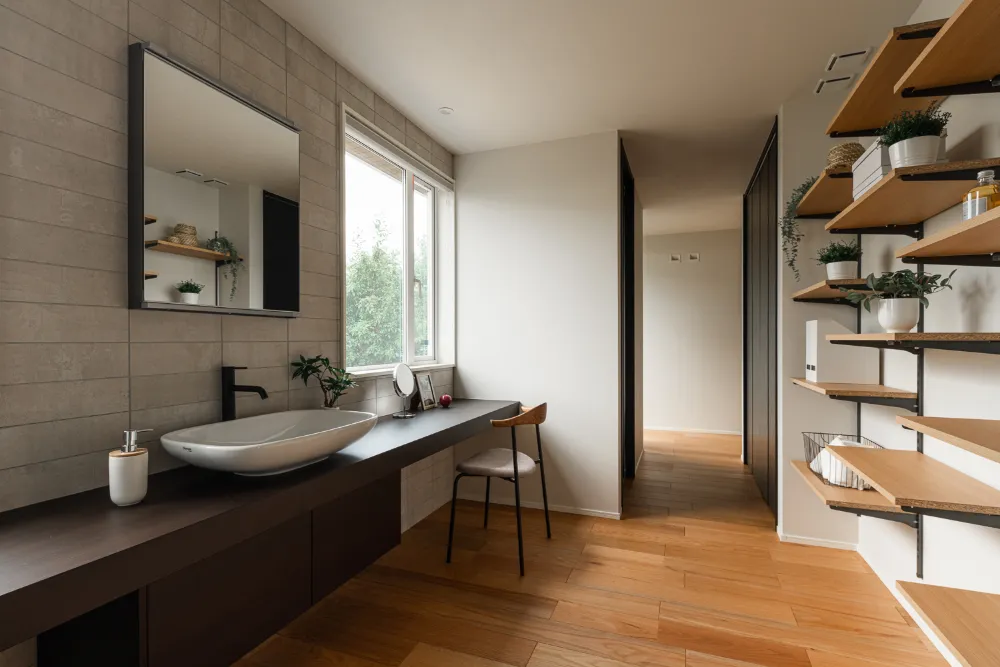 キッチン・洗面・浴室などの水回りは、使いやすさを最優先に計画。 移動距離を抑え、日々の動作が自然と整う動線になっています。