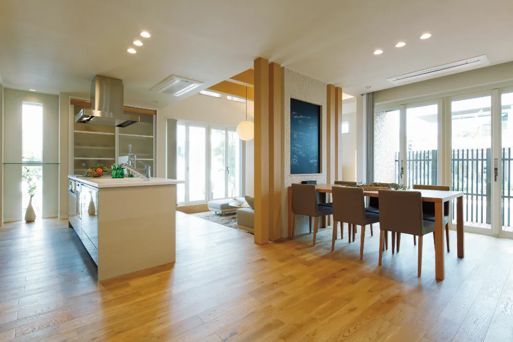 LDKは、日常の時間をゆったりと受け止める開放的な空間。 視線の抜けや動線を意識した配置で、実際の帖数以上の広がりを感じられます。