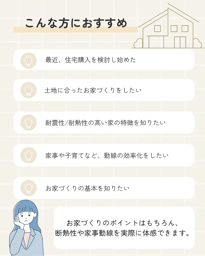 “性能”を、家族の暮らしの「安心」へ。 断熱・気密・耐震性にこだわった“高性能住宅”。 最高クラスの断熱仕様と、気密性に優れた構造で、一年を通して快適な温熱環境を実現します。 また、耐震等級3(最高等級)を標準とし、大切な家族を自然災害からしっかりと守ります。 住まいの「基本性能」を高めることで、デザイン性・可変性・暮らしやすさすべてを底上げ。これからの時代にふさわしい、“賢くて強い家”です。