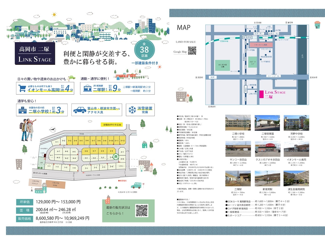 二塚小学校の目の前に新しい分譲地誕生! これから新生活を始める同世代家族が集まりやすい環境。 小学校・病院・駅も近く、商業施設多数で子育て世代にもおすすめです。