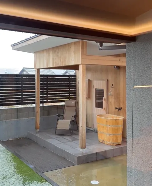 庭にはプライベートサウナも