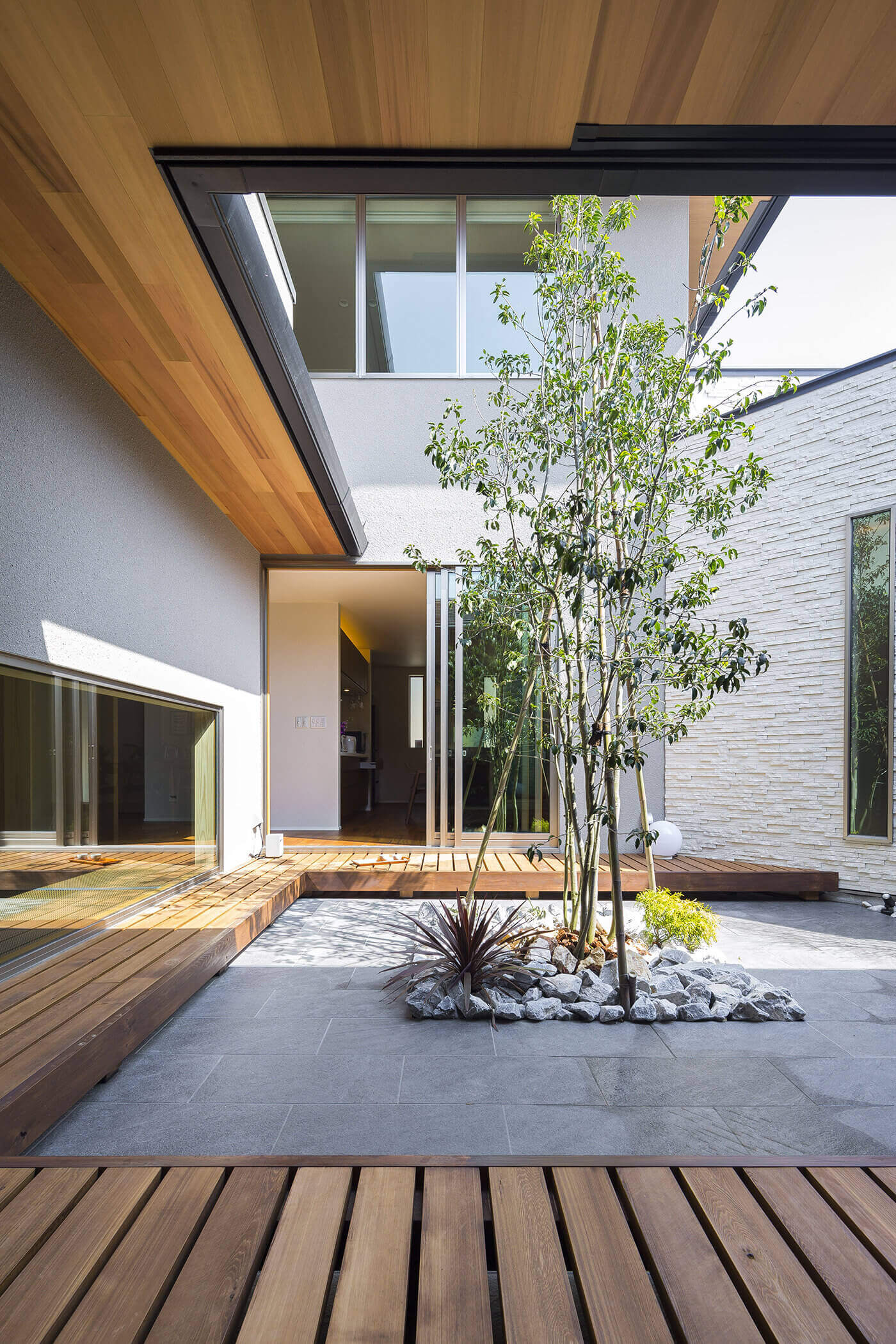 家のどこからでも緑を楽しめるテラス。 親世帯と子世帯が程よくつながり、家族の交流の場としても。 外の視線を気にすることなく過ごせるのも魅力の1つです。
