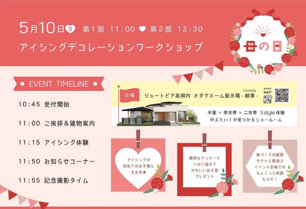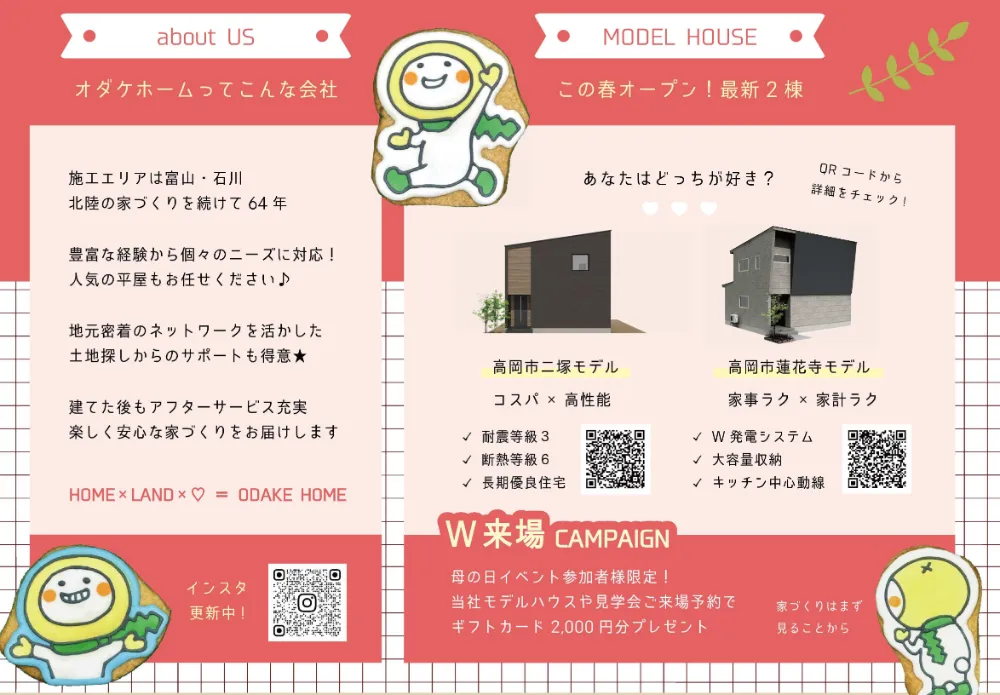 W来場キャンペーン(家づくりはまず見ることから) 母の日イベント参加者様限定! 当社モデルハウスや見学会ご来場予約で ギフトカード2,000円分プレゼント