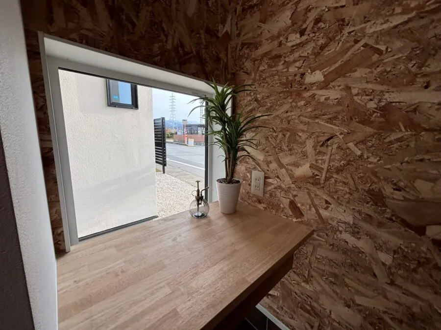 傷に強いOSBボードで仕上げた玄関収納は自転車や釣りなどの趣味の方に最適◎ また、リビングとつながるタイルテラスがあることで、バーベキューやお子さまとのプールを楽しむことができます。 2階にある書斎は、テレワークに使えるだけでなく、自分の時間を大事にしたい方におすすめの空間です。