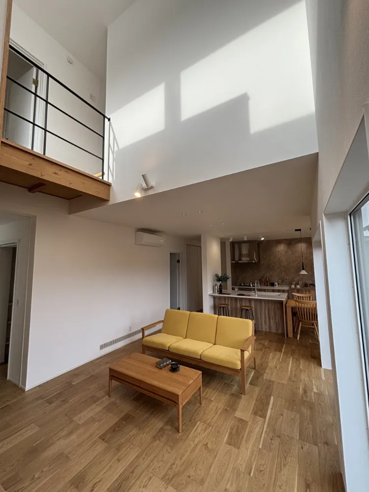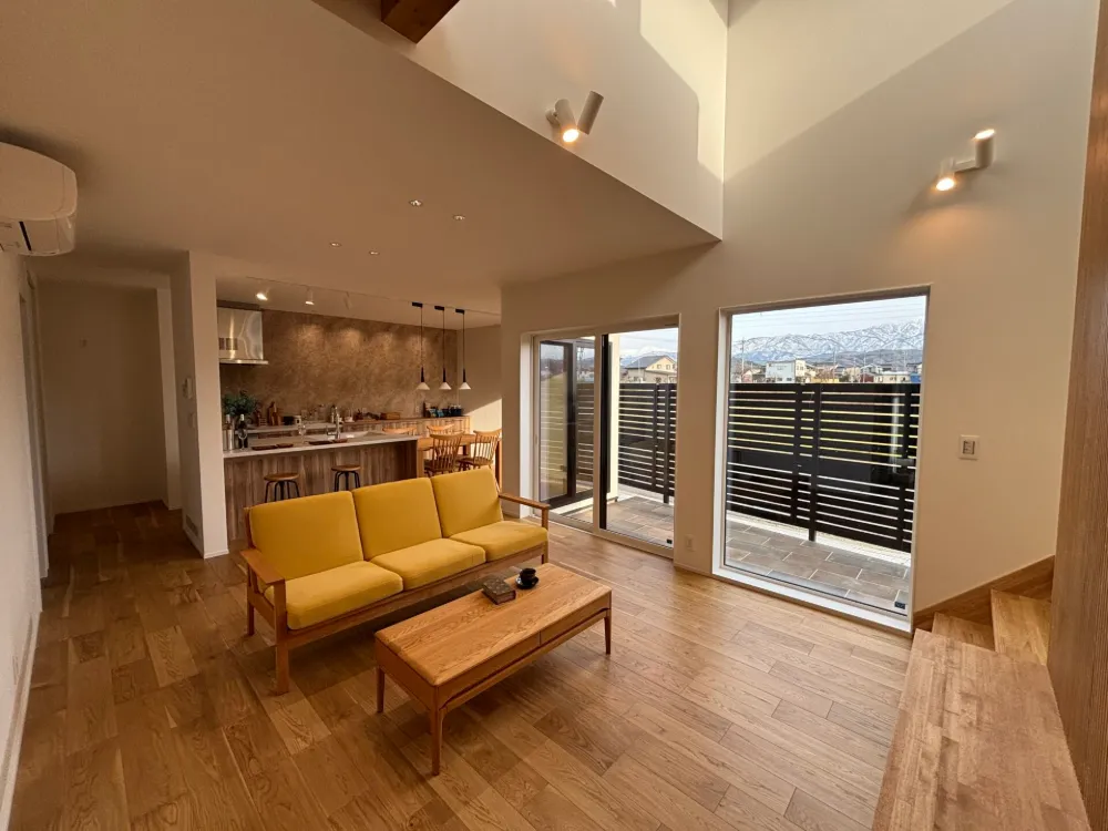吹き抜けがあっても当社独自暖房システム「AIR LOOP SYSTEM」のおかげで、寒い冬でも暖かい空間を作り出します。 床暖房とは異なり上手く空気をコントロールする、野島建設ならではの快適空間です。