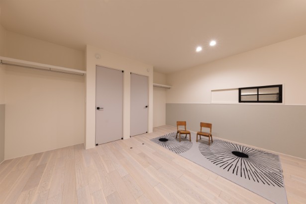 将来的に、2つに仕切れるように設計された子ども部屋。